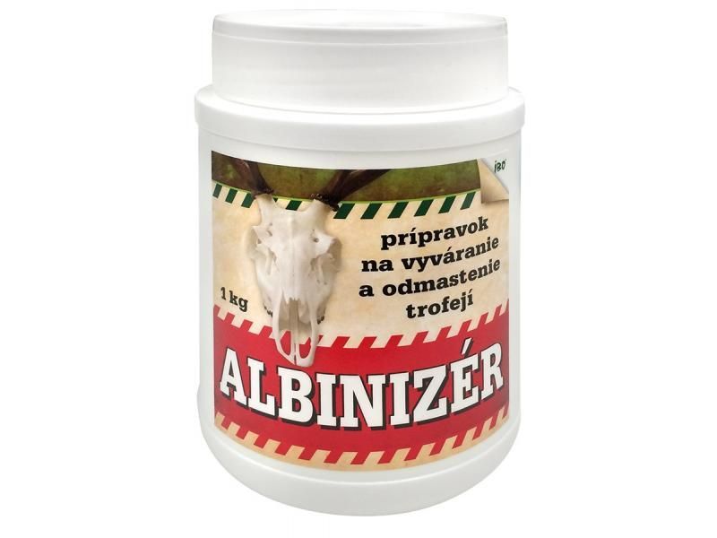 Prípravok na vyváranie a odmastňovanie trofejí ALBINIZER. Je určený k úprave trofejí (vyváraniu) a príprave k následnému vybieleniu peroxidom vodíka. Prípravok obsahuje látky, ktoré za tepla rozkladajú tkanivo a zároveň dokonale odmasťujú kosti. Z tohto dôvodu nedochádza ani po dlhšej dobe k zožltnutiu lebky vplyvom zostatkovej mastnoty, ktorá časom vystupuje z nedokonale odmastených kostí. Hlavnou výhodou použitia ALBINIZERU je skrátenie času potrebného na vyvarenie trofeje minimálne na polovicu a súčasné dokonalé odmastenie trofeje. Teplota vody môže byť udržiavaná v rozmedzí 80 až 90 stupňov, čím sa zamedzí aj rozvareniu lebky. Obsah balenia je 1000 g. Dávkovanie 30-40g na 1 liter vody.