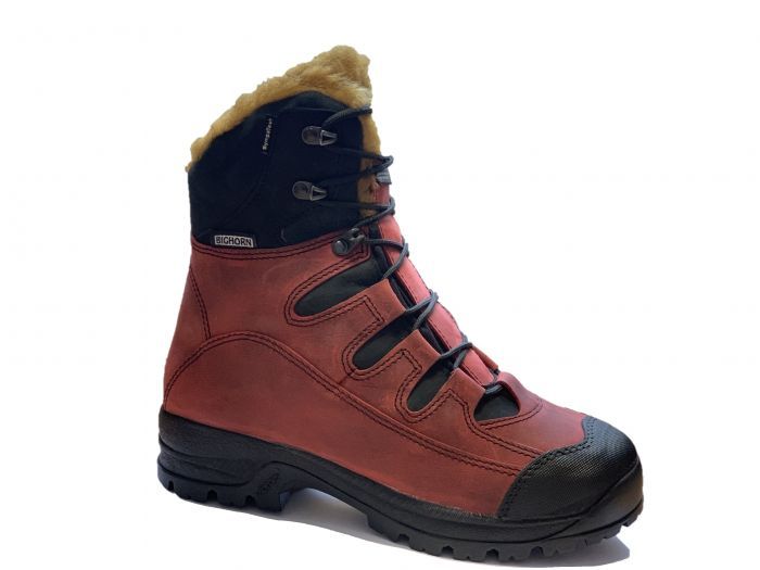 Dámska zimná obuv bighorn KANADA je vhodná na používanie do náročných chladných podmienok. Farba obuvi je červená. Odporúčané používanie na vychádzky, pre turistiku a outdoor. Zvršok je vyrobený zo silnej vodeodolnej nubukovej usne. Zateplenie baran v kombinácii s izolačnou vrstvou THINSULATE a vodeodolnou membránou SYMPATEX , ktorá umožňuje priedušnosť obuvi z vnútornej strany von a zamedzuje prenikaniu vlhkosti do obuvi. Vďaka tejto membráne je možné obuv nosiť v mokrom prostredí. Podrážka VIBRAM z kvalitnej gumy je pružná a veľmi priľnavá. Obuv je doplnená okopom na špičke. Topánky majú systém rýchleho šnurovania s dvoma háčikmi na vŕšku.