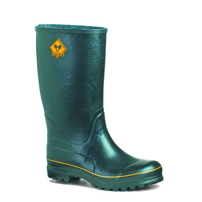 Dámske zateplené gumofilcové čižmy bighorn KENTUCKY sú ideálnym riešením pre daždivé a chladné počasie. Farba čižiem je zelená. Majú hrubšiu protišmykovú podrážku zaisťujúcu bezpečnosť chôdze. Čižmy sú veľmi pohodlné. Materiál je vysoko kvalitná guma zateplená filcom . Poskytujú vynikajúci užívateľský komfort a to aj pri nízkych teplotách (materiál testovaný do - 15 ° C).