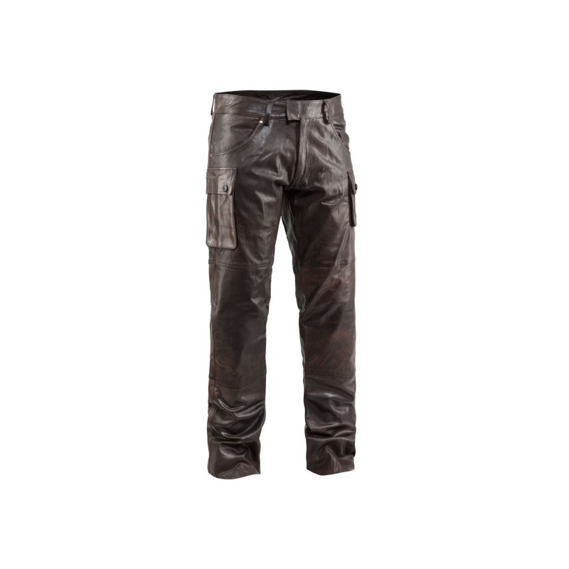 Klasické nohavice z pravej kože s veľkým množstvom praktických vreciek. Všetky vrecká majú pogumované gombíky. Nohavice sa dodávajú s neukončenou dĺžkou (+ 10cm).