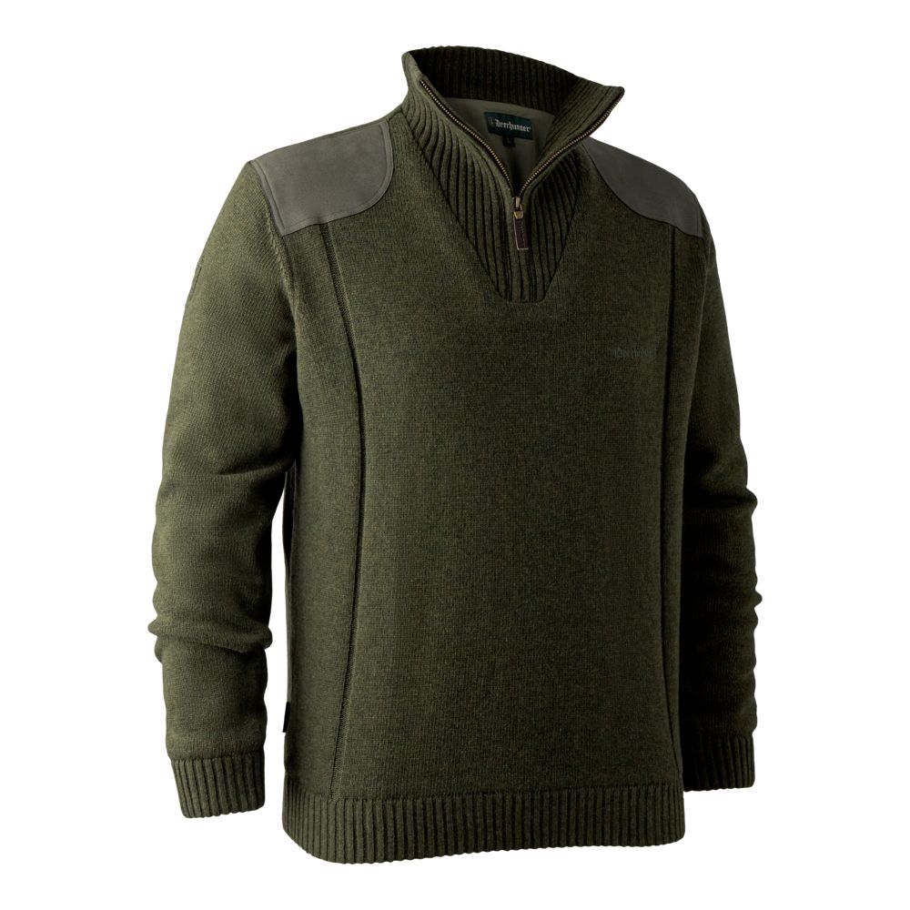 Funkčný pletený sveter Deerhunter Carlise z jahňacej vlny s golierikom.