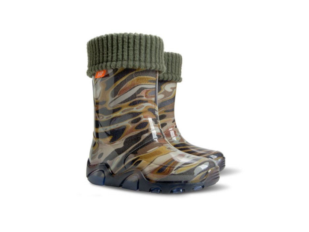 Detské zateplené čižmy demar STORMER LUX PRINT sú ideálne pre daždivé letné a jesenné počasie. Farba čižiem je zelenohnedý maskáč. Majú hrubšiu protišmykovú podrážku zaisťujúcu bezpečnosť chôdze. Čižma je veľmi pohodlná a ľahká. Materiál je vysoko kvalitné a odolné PVC podšité príjemnou textíliou. Na päte obuvi je bezpečnostný reflexný pásik pre dobrú viditeľnosť dieťaťa v tme. www.demar.cz