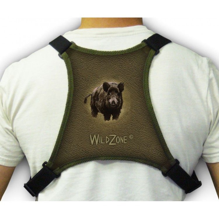 Držiak na ťažší ďalekohľad, puškohľad alebo na kameru a fotoaparát, ktorý odľahčuje a je prispôsobiteľný rôznym odevom.