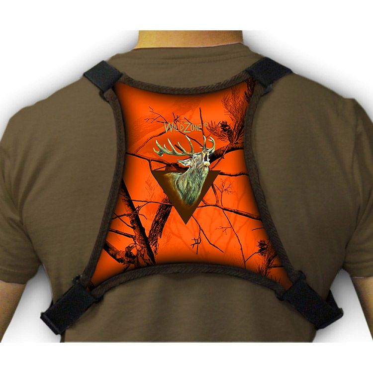 Držiak na ťažší ďalekohľad, puškohľad alebo na kameru a fotoaparát, ktorý odľahčuje a je prispôsobiteľný rôznym odevom.