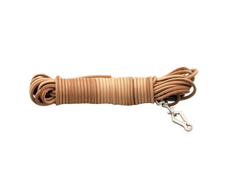 Farbiarska šnúra guľatá 4mm ukončená karabinou prírodnej farby, určená pre malé plemená. Cena je za 8m farbiarskej šnúry.