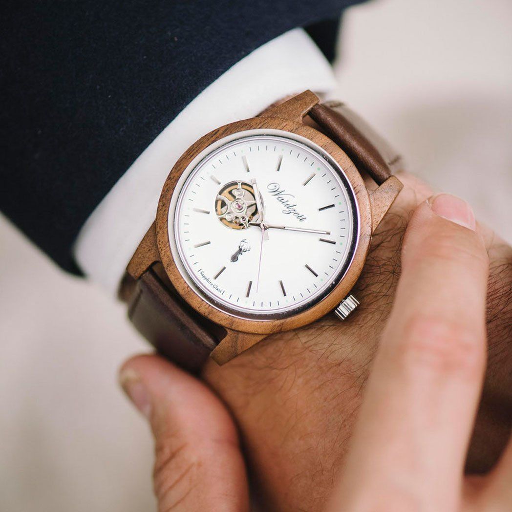 Tmavo hnedé drevené automatické hodinky Gamskar sú unikátnym a veľmi obľúbeným kúskom, ktorý volia naši zákazníci.