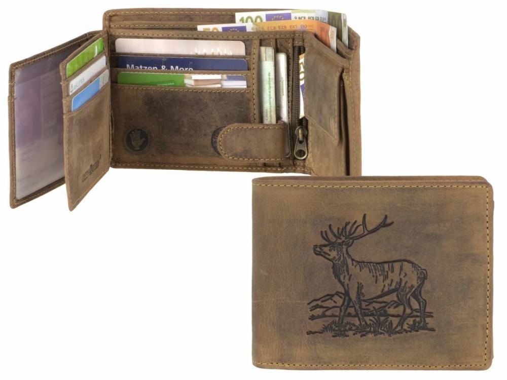 Pánska peňaženka z kvalitnej brúsenej kože Greenburry 12,5x10,5cm s razbou jeleňa. Ručná výroba. Farba hnedá.
