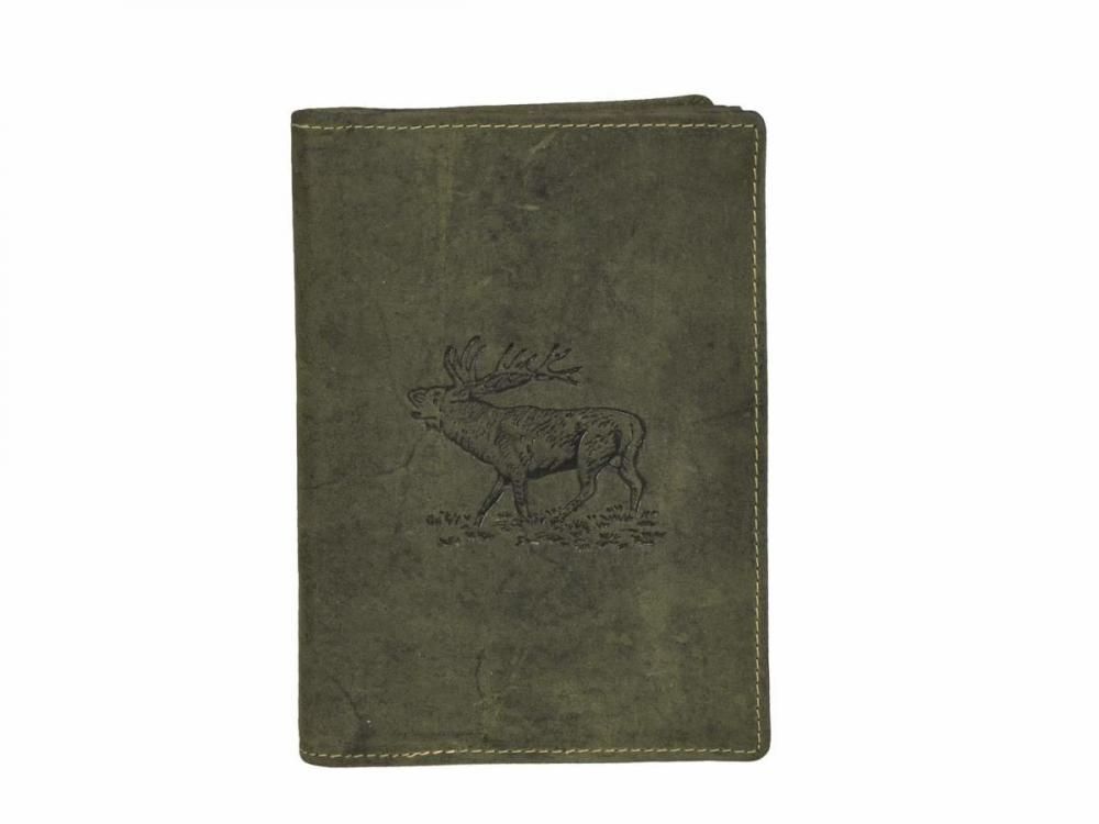 Dokladovník z brúsenej kože Greenburry 12x16,5cm. Razba jeleňa. Farba zelená.