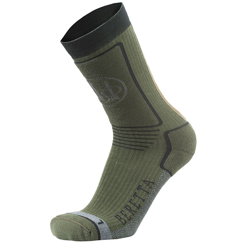 Ponožky Beretta Hunting Short Socks sú navrhnuté tak, aby dokonale sedeli anatómii chodidla a poskytovali maximálne pohodlie. Sieťovaná štruktúra a ventilačný kanál na vonkajšej strane umožňujú vysokú priedušnosť, termoreguláciu a rýchle schnutie.Vlastnosti:LYCRA® Fiber Antistress Golier zaisťuje maximálnu priľnavosť bez kompresie.Elastická pletenina vyrobená z vysoko kvalitného polyesteru a vlákna LYCRA® zaisťuje dokonalé a ergonomické prispôsobenie.Vysoká priedušnosť a termoregulácia, rýchle schnutie, mäkkosť a pohodlie.Predná ochranná vložka s dvojvrstvovou špongiou vyrobenou z polyesteru a vlákna LYCRA®.Špička, päta a podošva vystužené dvojitým vystuženým polyesterom a vláknom LYCRA® pre zvýšenú ochranu a pohodlie, prispôsobené anatómii pravej a ľavej nohy.Ventilačný kanál na vonkajšej strane chodidla vyrobený zo sieťoviny.Špeciálna špička s ultra plochým, neviditeľným a antifrikčným švom.Veľkosti:S = 35-37M = 38-40L = 41-43XL = 44-46