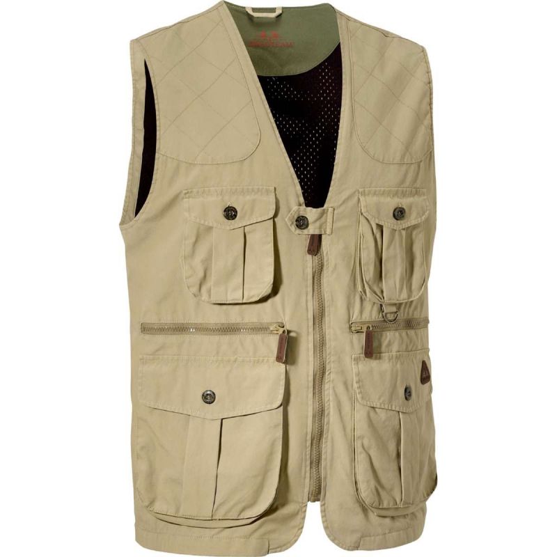 Ľahká vesta s veľkým množstvom praktických vreciek má tenké polstrovanie a zosilnenie na ramenách pre dokonalý komfort, volný strih s nastavitelným pásom. Vesta je vyrobena zo zmesi kvalitnej bavlny a polyesteru so špeciálnou povrchovou úpravou.