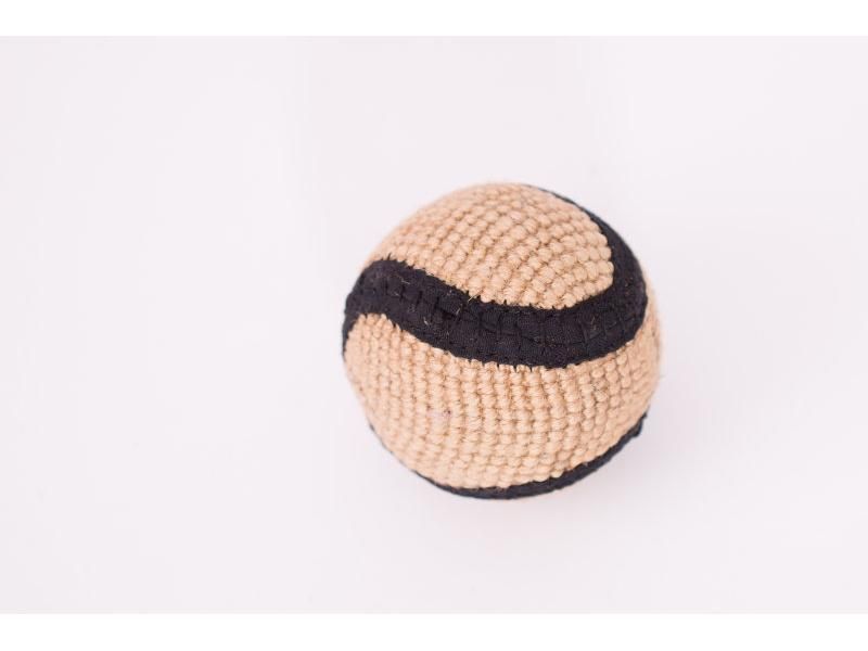 Loptičky sú vyrobené z prírodného materiálu - JUTA. Loptička je tvrdý nedá sa stlačiť. Vhodný je na nosenie, aportovanie, za odmenu. Farba: hnedá juta, čierne prešitie Priemer: cca 7 cm Váha: cca 190 g Rozmery sú približné, pretože je to prírodný materiál a ručné práce.