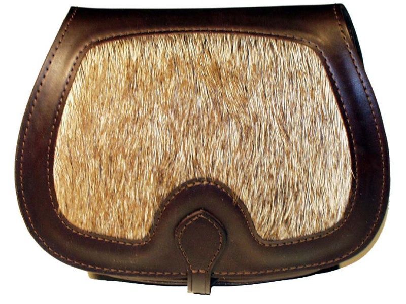 Kvalitná pevná odolná malá kožená poľovnícka brašňa z hovädziny so srsťou diviaka.