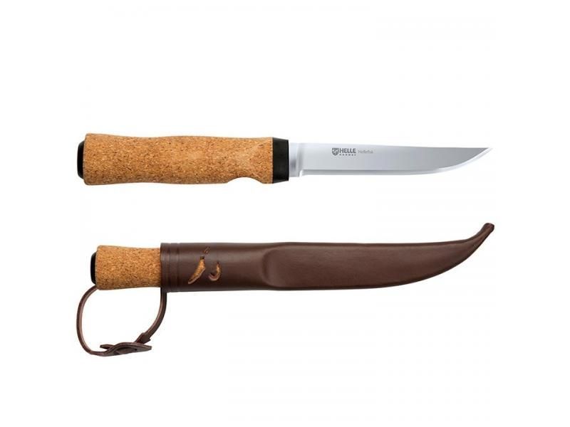 Nože svetoznámej značky Helle sú stále ručne vyrábané v Nórskej oblasti Sognefjorden (Holmedal). Pri ich výrobe sú používané staré tradičné postupy a len tie najkvalitnejšie materiály ako sú drevo, kosť, koža. Hellefisk je priamy rybolovný nôž s korkovou rukoväťou. Nehrdzavejúca čepeľ z ocele Sandvik 12C27 je tenká a tuhá. Nôž je veľmi ľahký, a dokáže plávať na vodnej hladine. Ušľachtilé nerezové ocele sú precízne kalené na tvrdosť 58 HRC. Vybrané modely nožov Helle majú čepele zhotovené sendvičovou metódou, keď čepeľ tvoria viacero druhov oceli. Stredný rezný plát ocele má vysokú tvrdosť a rezavosť (veľmi vysoká odolnosť proti opotrebovaniu). Druhý, v sendviči použitý materiál, nože sú tak odolné proti vyštrbeniu ocele a extrémne húževnaté, taktiež odolné proti zlomeniu noža a inému mechanickému poškodeniu. Nože Helle sú veľmi vhodné pre tú najnáročnejšiu prácu. Rukoväť noža je z švédskej brezy a je tlakovo impregnovaná proti vlhkosti. Nôž je dodávaný v exkluzívnom darčekovom balení vrátane kvalitného koženého púzdra, handričky na čistenie a certifikátu.