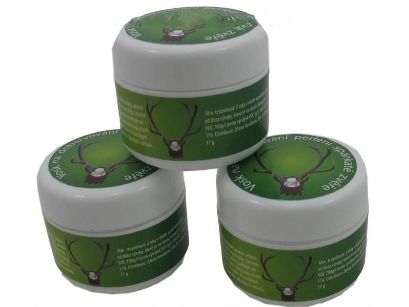 Prípravok slúži na dofarbenie parožia. Ľavá časť parožia bola ošetrená prípravkom, pravá má pôvodný prírodný vzhľad. Z balenia sa dofarbí 3-4 srncov. Cena je za jeden kus. Obrázok je len ilustračný.
