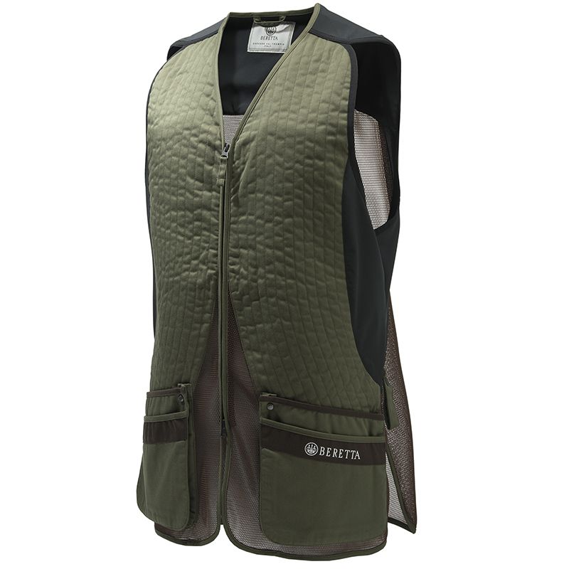 Strelecká vesta zo strečovej bavlny a priedušnej 3D sieťoviny s bavlnenými sklíčkami a vnútornými vreckami pre produkt "Beretta redukcia spätného rázu EVO".Strelecká vesta Silver Pigeon je reinterpretáciou jednej klasickej a ikonickej vesty Beretta, ktorá je vynovená z hľadiska materiálov aj dizajnu. Tradične je vybavená bavlnenými návlekmi a roztiahnuteľnými dvojitými vstupnými vreckami, je vynovená aj vďaka širokým vsadkám z elastického materiálu na bokoch, ktoré zaisťujú maximálnu priľnavosť k telu. Navyše, chrbát, takmer celý z 3D sieťoviny, elastický, priedušný a odolný, zaisťuje vynikajúce prispôsobenie a voľnosť pohybu, zatiaľ čo pohodlné bavlnené rameno možno prispôsobiť výšivkou alebo potlačou.Vlastnosti:Dvojcestný YKK zips.Predné vrecká s dvojitým vstupom.Priedušná elastická 3D sieťovina na chrbte s potlačou loga Beretta.Gumová nášivka s logom Beretta v kontrastnej farbe na zadnom strmene.Plastová spona na upevnenie podbradníka na zadnej strane.Elastická vsadka na bokoch.Obojstranný držiak na slúchadlá/uterák.