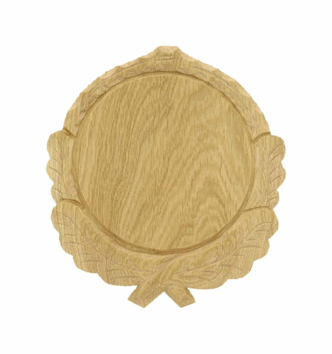 Veľmi pekne vyrezávaná trofejová podložka vyrobená z vysoko kvalitného dubového dreva. Podložka je spracovaná na najvyššej možnej kvalitatívnej úrovni. Je vyhotovená vo svetlom farebnom prevedení. Vnútorný priemer podložky je 14 cm. Vaša trofej na tejto podložke určite vynikne a budú vám ju všetci závidieť.