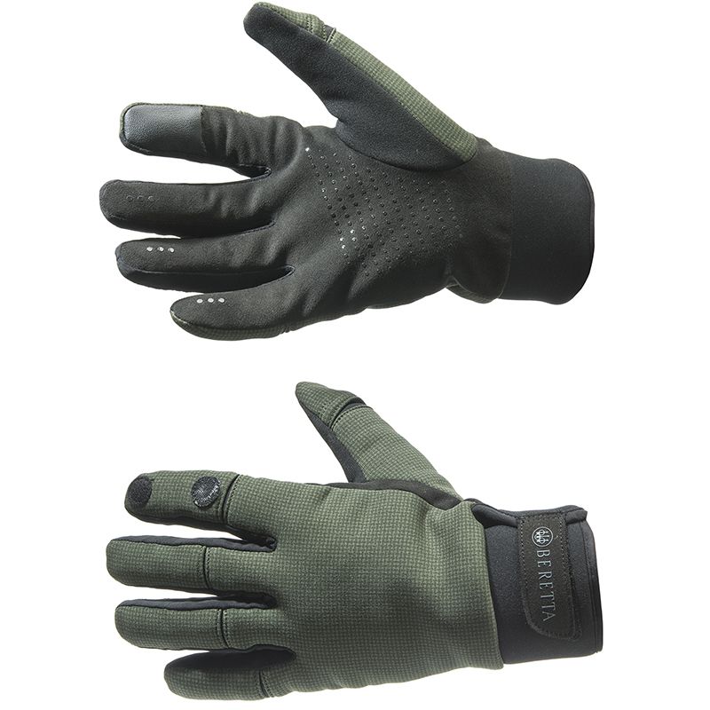 Pánske rukavice WaterShield s membránou Polartec® Windpro® a WRT - Water Resistant Technology - sú odolné proti vetru s vložkami na končeky prstov, ktoré umožňujú používanie zariadení s dotykovou obrazovkou. Tenká konštrukcia spolu s protišmykovou a úchopovou dlaňovou vložkou umožňuje pohodlné stlačenie spúšte.Vlastnosti:Vložky dotykovej obrazovky na špičke ukazováka.Elastická neoprénová manžeta.Logo Beretta vytlačené na manžete.Protišmyková a priľnavá vložka pri dlani.